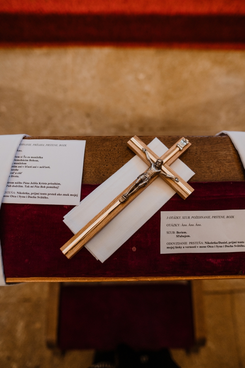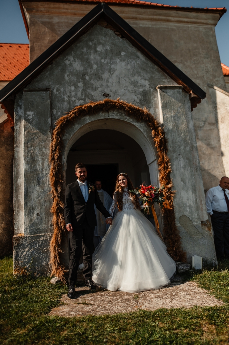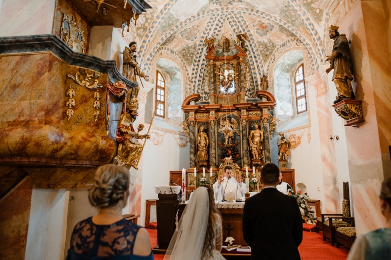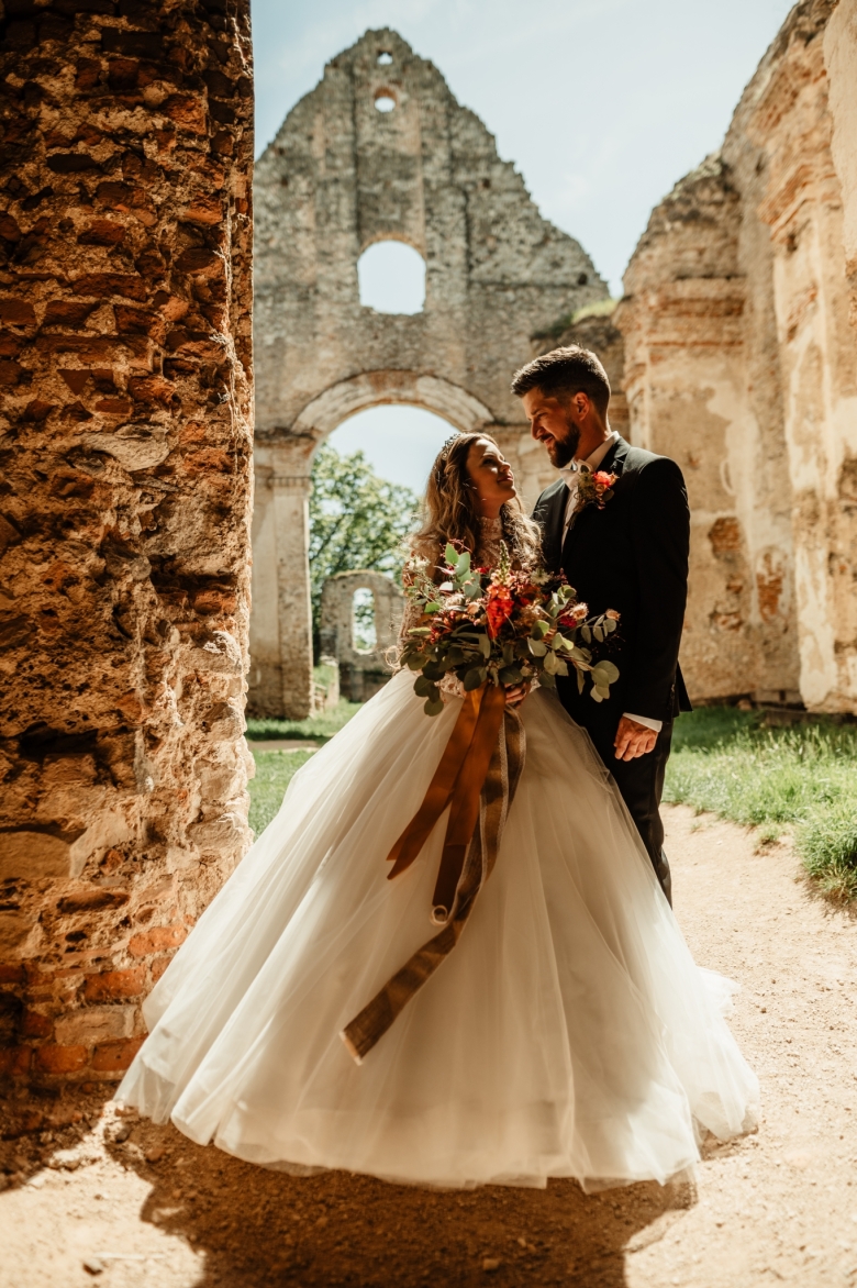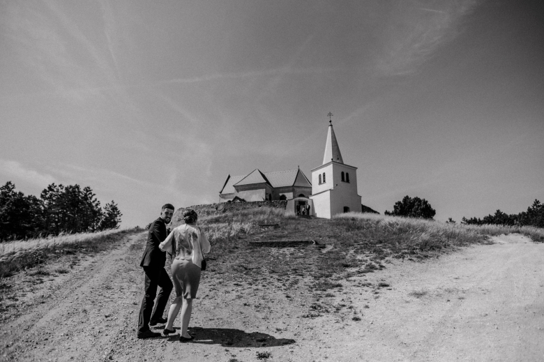 Za Nikoletou a Danielem jsem se vydala v květnu na Slovensko. Kdyby mě v závěru mé ranní cesty neobjevili v lese, tak jsem se ztratila (díky Google maps:D) Místa, kde svatba probíhala byly kouzelné. Zřícenina Klášteru Katarínka má neskutečnou atmosféru, zajeďte si tam na výlet. Obřad byl v kostelíčku na vysokém kopci a tak jsme si dali všichni ještě turistický výšlap:)) Jak já říkám: Svatební fotograf musí být ve formě:D