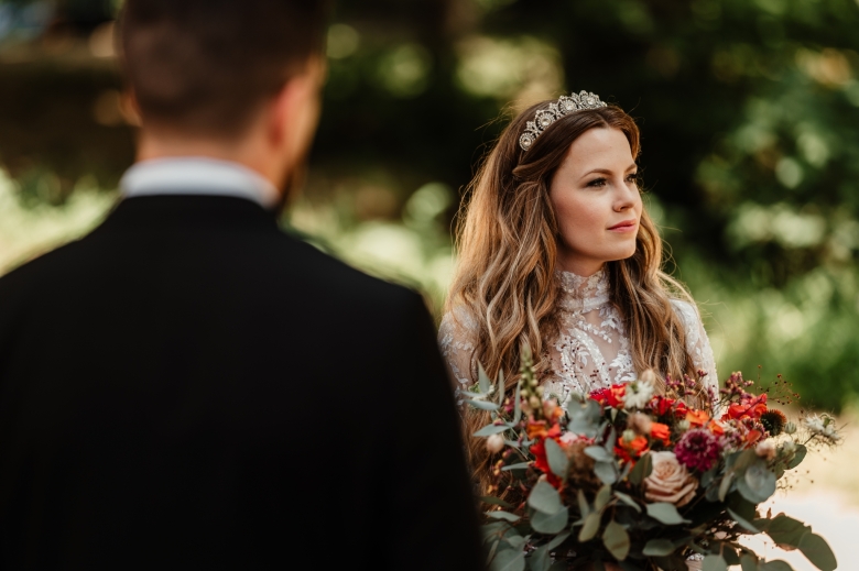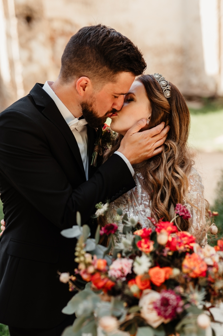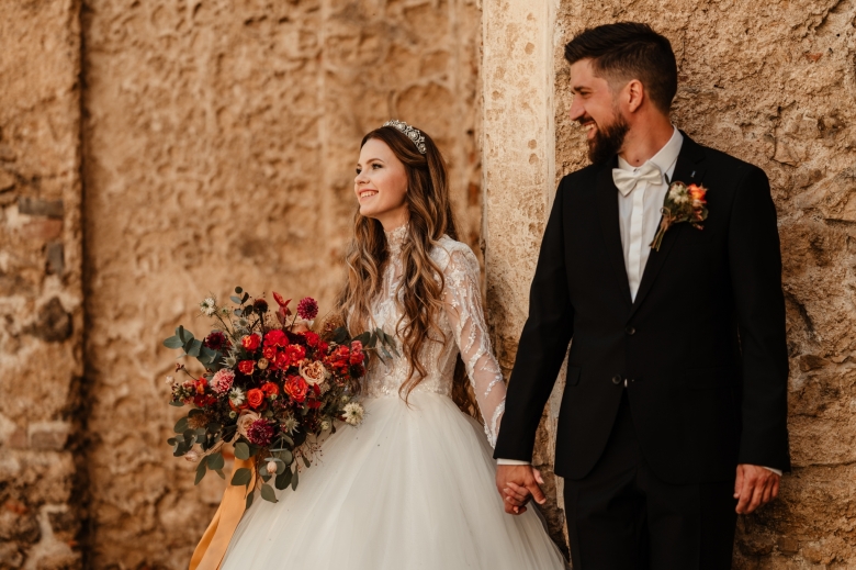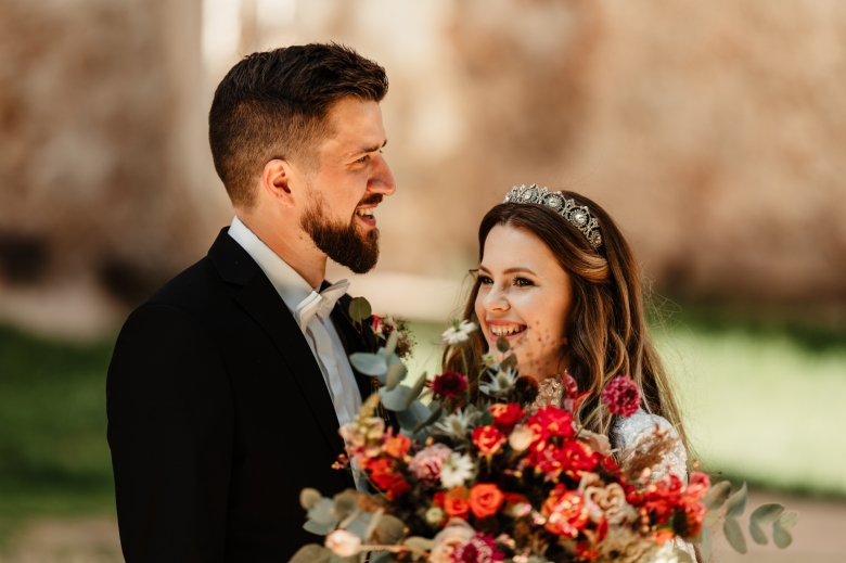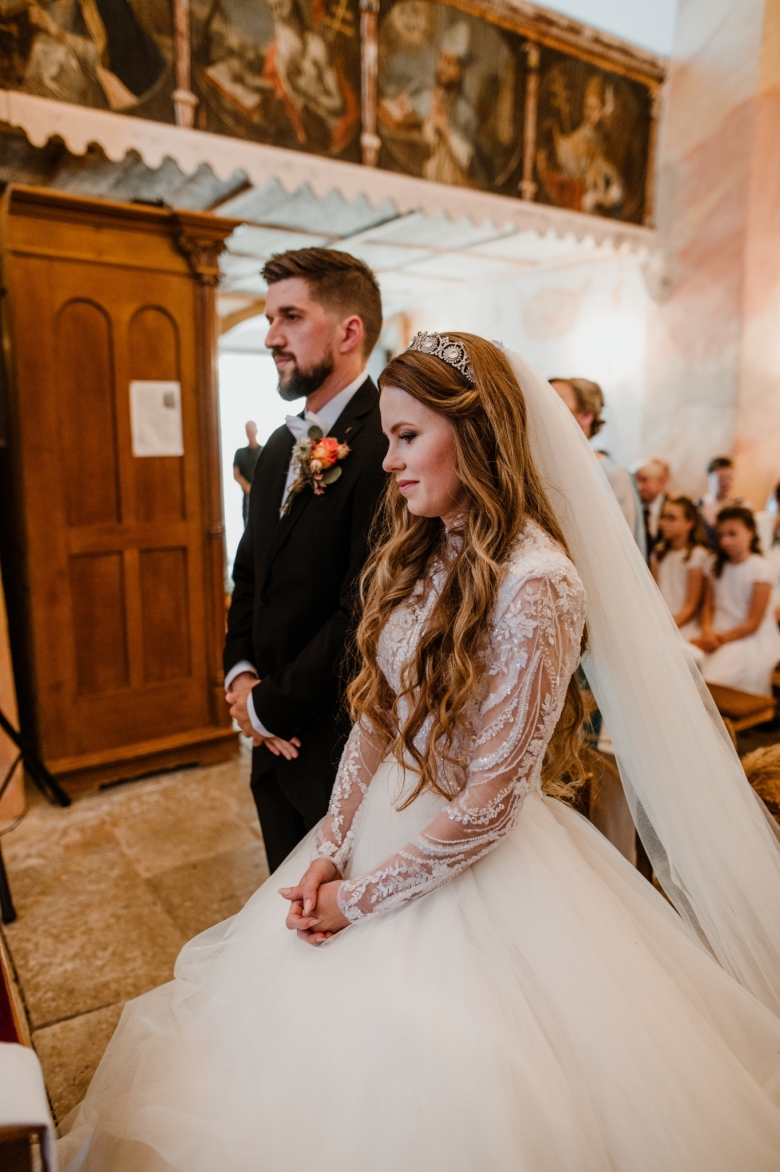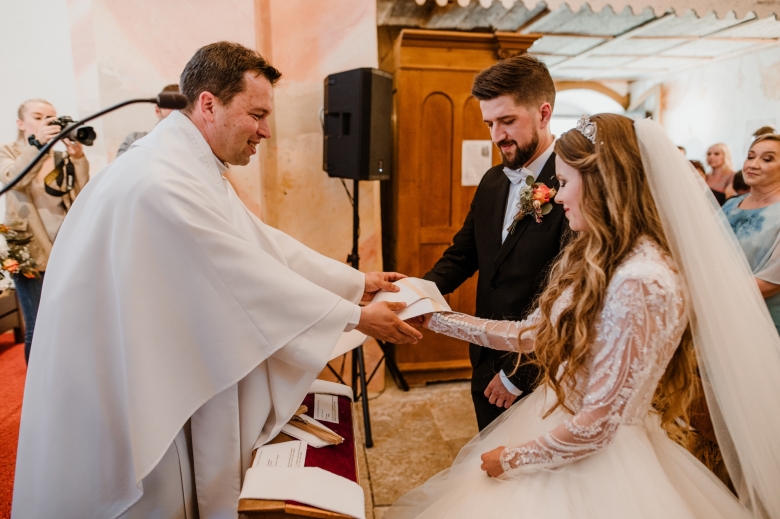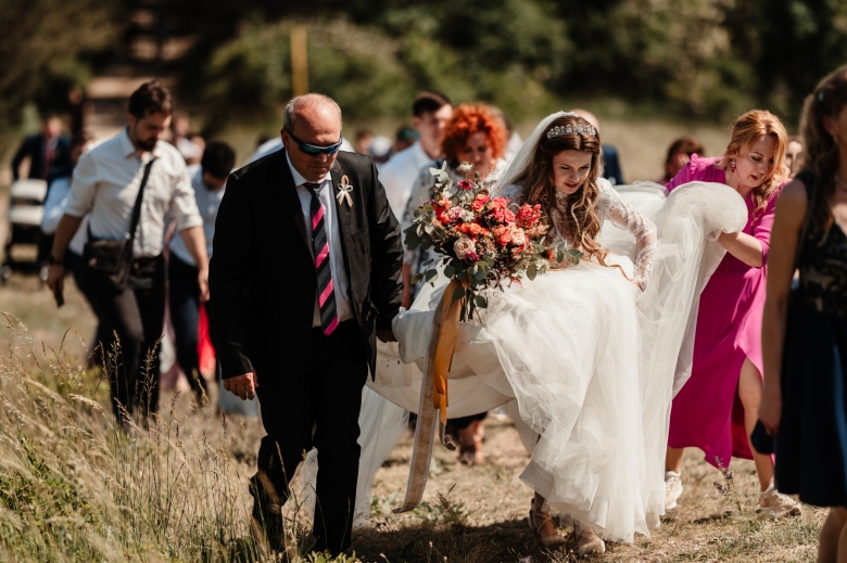 Za Nikoletou a Danielem jsem se vydala v květnu na Slovensko. Kdyby mě v závěru mé ranní cesty neobjevili v lese, tak jsem se ztratila (díky Google maps:D) Místa, kde svatba probíhala byly kouzelné. Zřícenina Klášteru Katarínka má neskutečnou atmosféru, zajeďte si tam na výlet. Obřad byl v kostelíčku na vysokém kopci a tak jsme si dali všichni ještě turistický výšlap:)) Jak já říkám: Svatební fotograf musí být ve formě:D