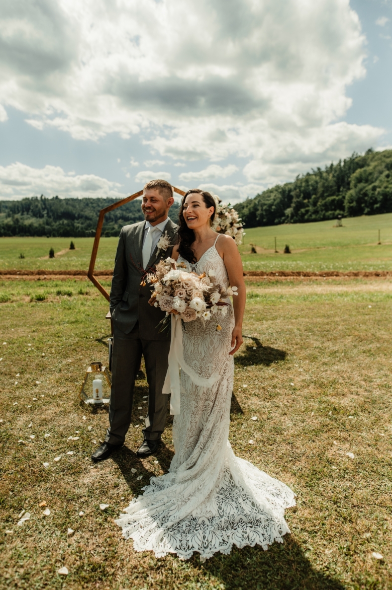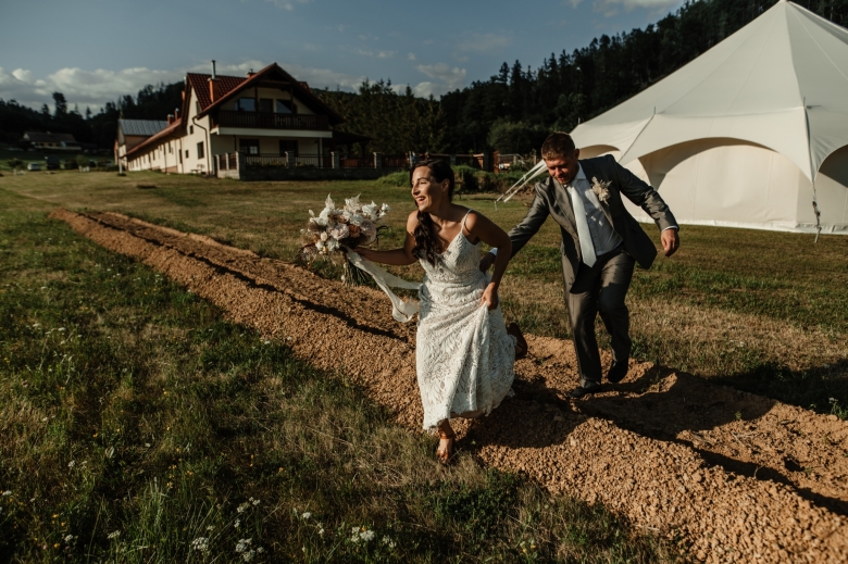 Opravdu velká nálož fotek:)) Za to se předem omlouvám. Nešlo vybrat. Tahle svatba byla nádherná a pro mnohé z vás bude jistě inspirativní. Lenka s Lukášem si totiž pronajali stan a jako lokaci zvolili louku jejich přátel. Z povídání vím, že připravit terén a postavit stan byla velká fuška, ale stálo to za to. Květiny, celkový styling dělala naše Wedding Laboratory:)