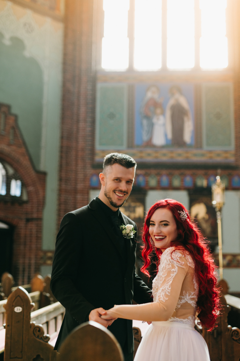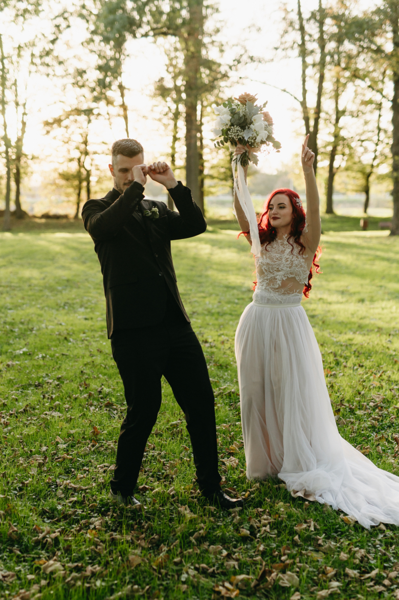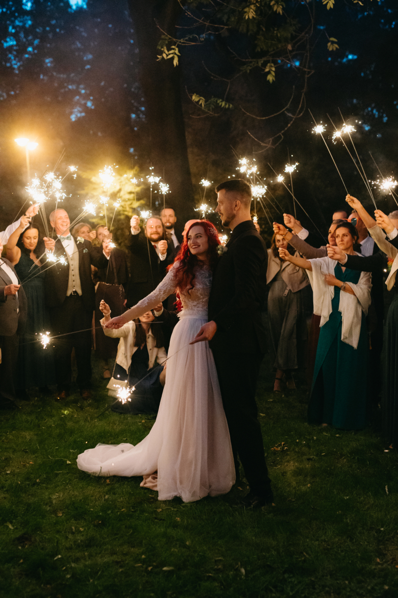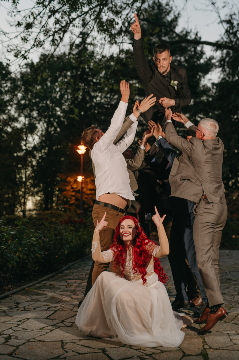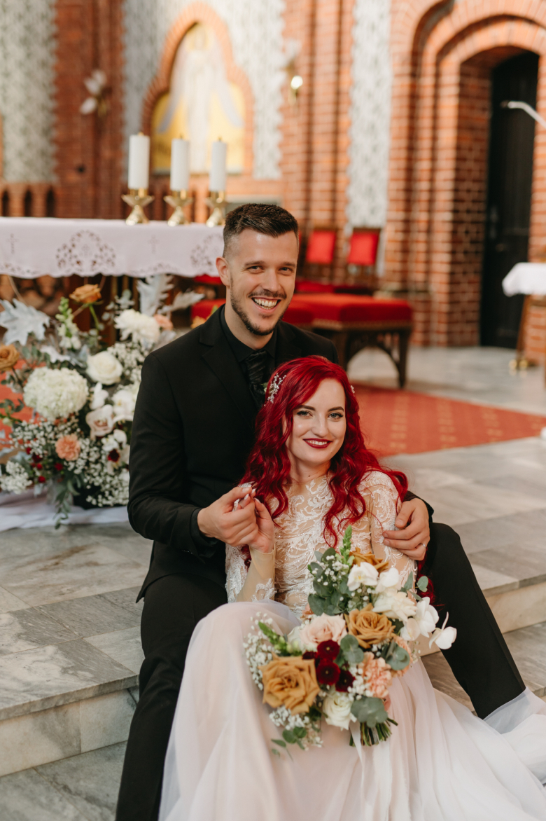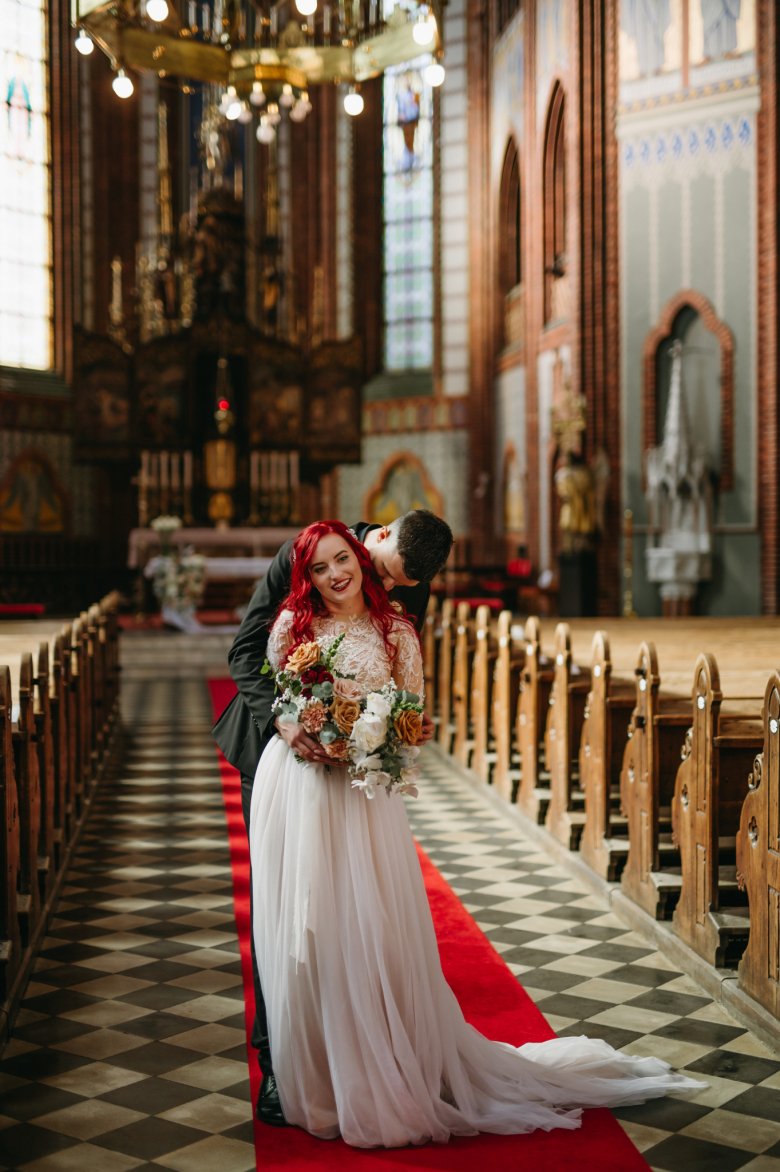 Nikol a David svůj den prožili na nádherném zámku Chałupki v Polsku, kde na ně dýchala historie i elegance na každém kroku. Po krásném obřadu v kostele následovala květinami provoněná hostina plná jemnosti a detailů. Nevěsta v šatech šitých na míru talentovanou švadlenkou Hanou Matyášovou vypadala jako z obrazu – její rudé vlasy a dokonale sladěná rtěnka dodaly celému dni kapku nezaměnitelného kouzla. Pojďte si prohlédnout fotky a nechte se vtáhnout do této atmosféry:).