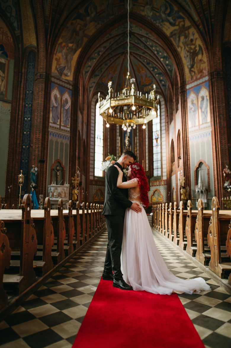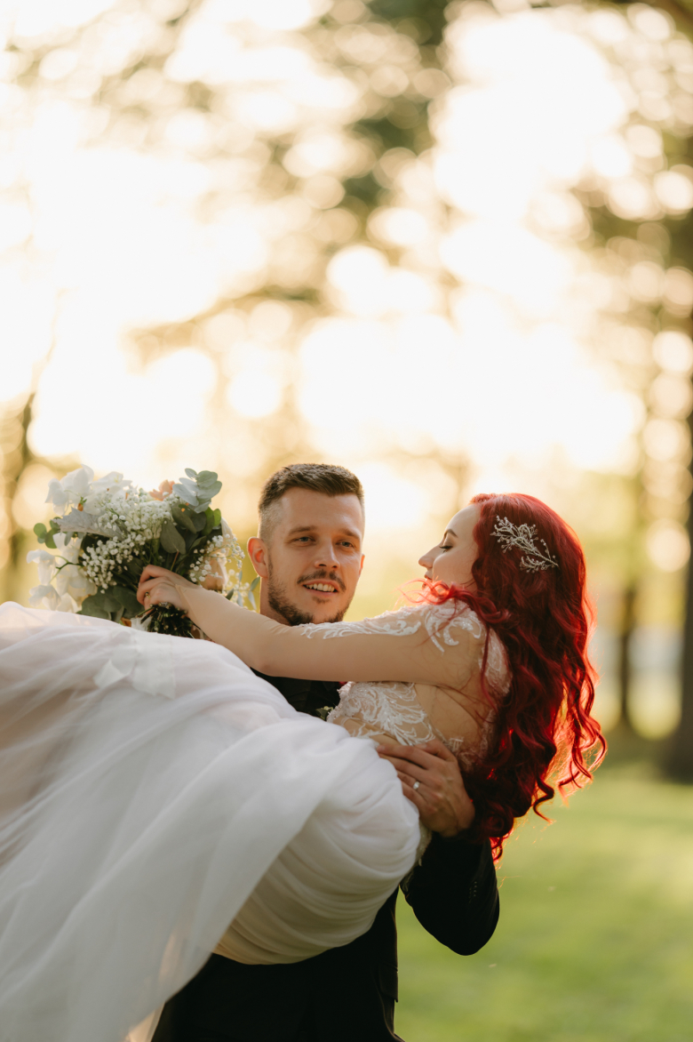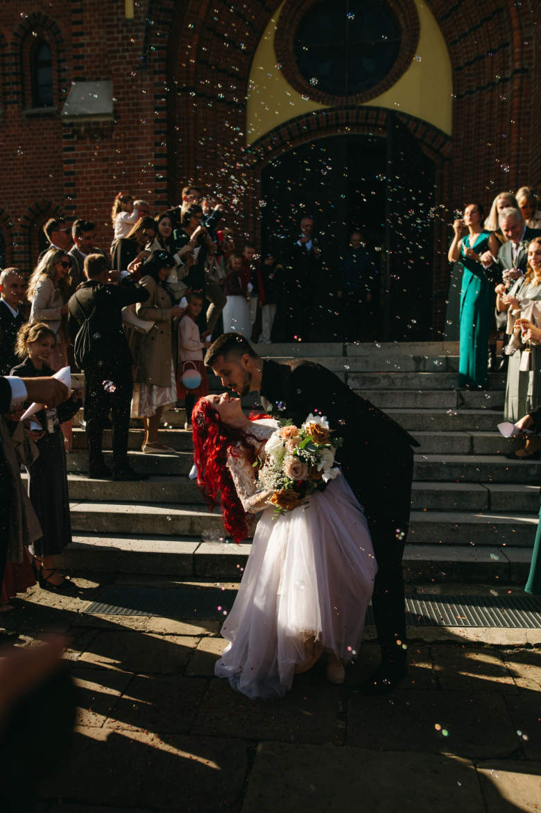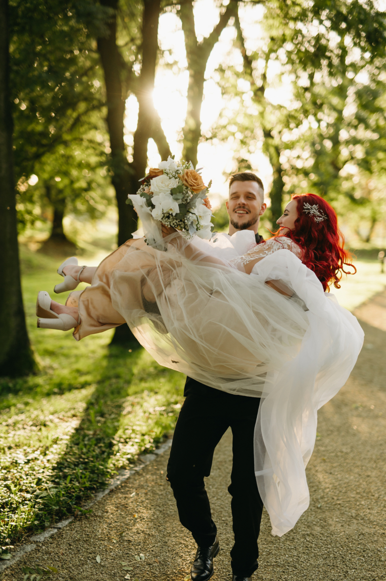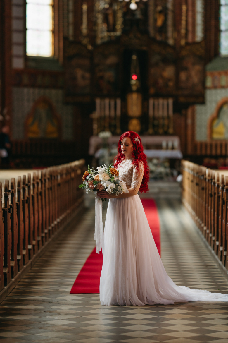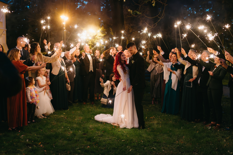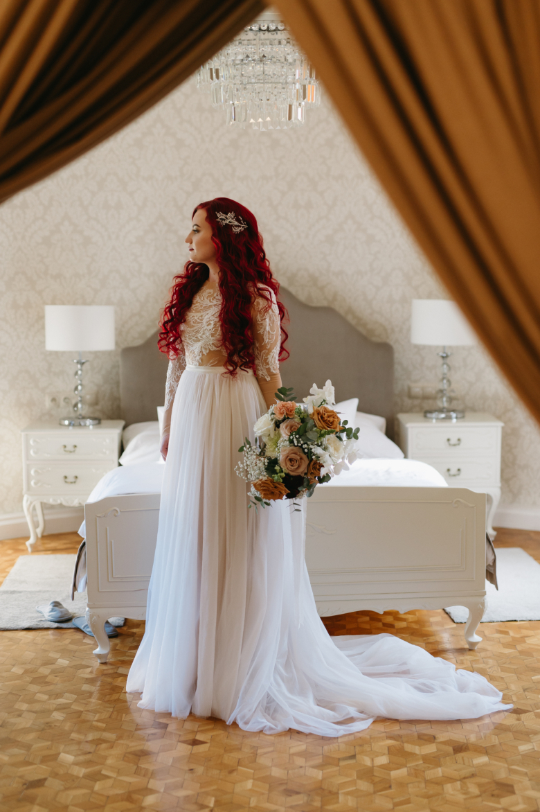 Nikol a David svůj den prožili na nádherném zámku Chałupki v Polsku, kde na ně dýchala historie i elegance na každém kroku. Po krásném obřadu v kostele následovala květinami provoněná hostina plná jemnosti a detailů. Nevěsta v šatech šitých na míru talentovanou švadlenkou Hanou Matyášovou vypadala jako z obrazu – její rudé vlasy a dokonale sladěná rtěnka dodaly celému dni kapku nezaměnitelného kouzla. Pojďte si prohlédnout fotky a nechte se vtáhnout do této atmosféry:).