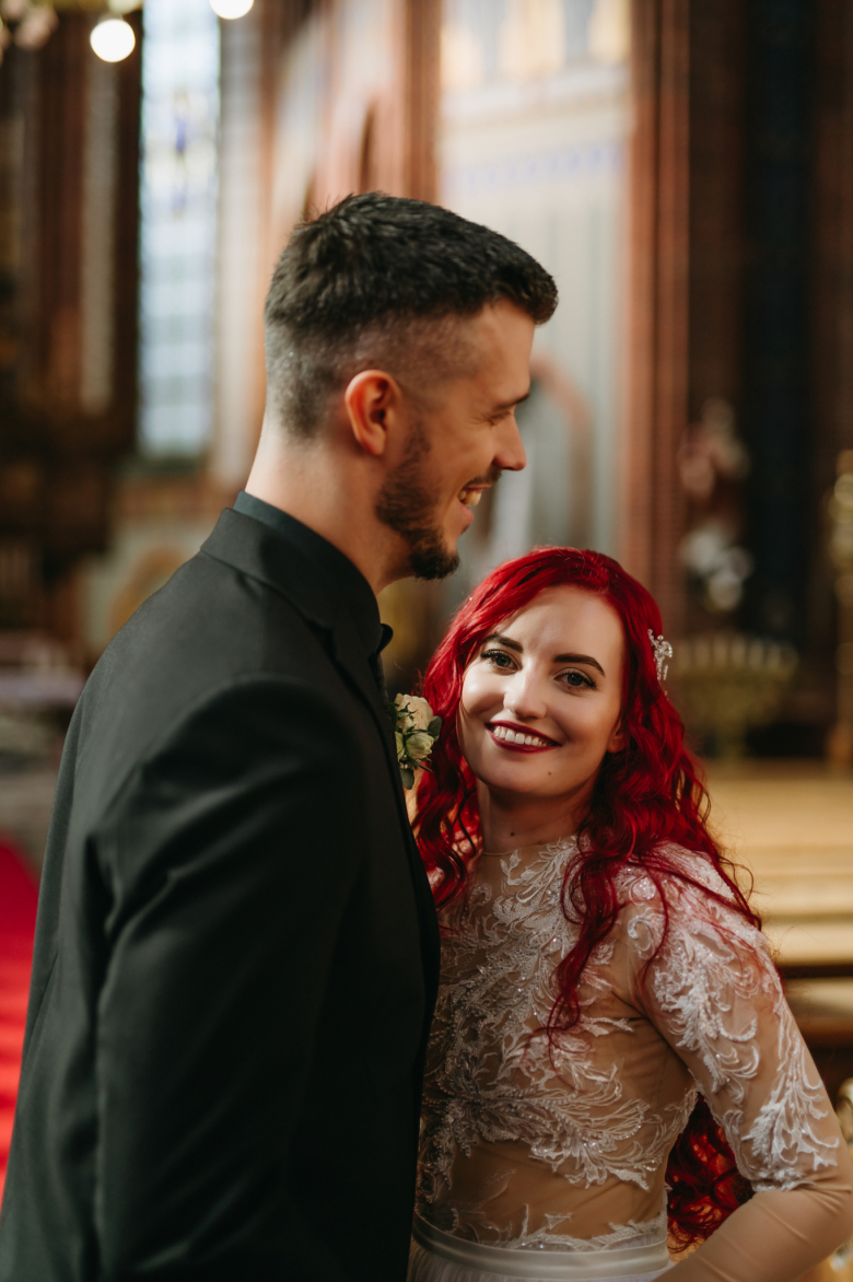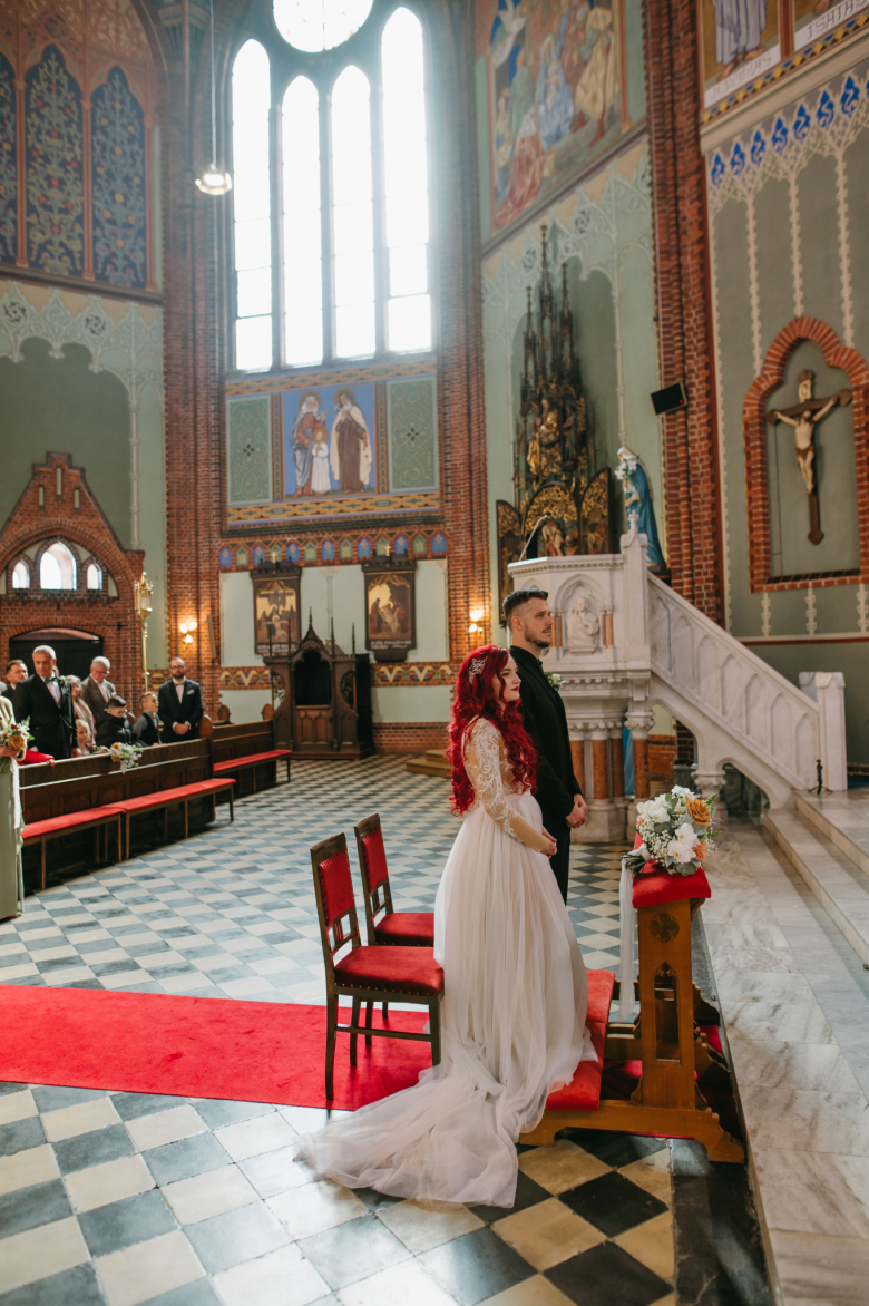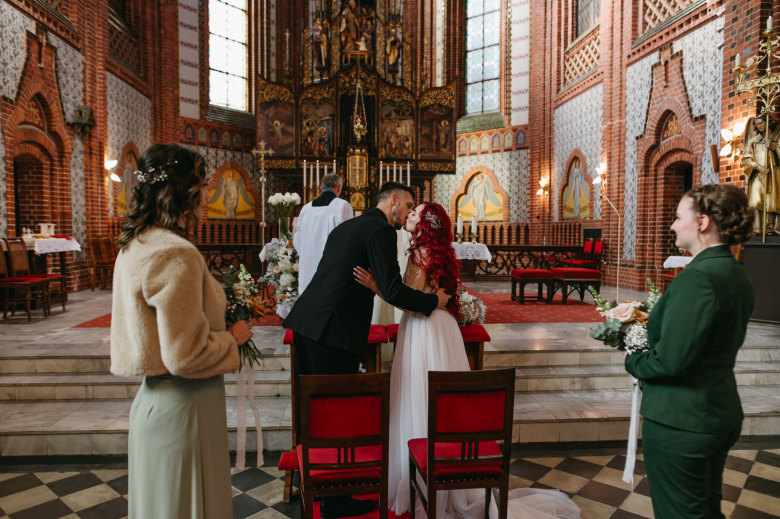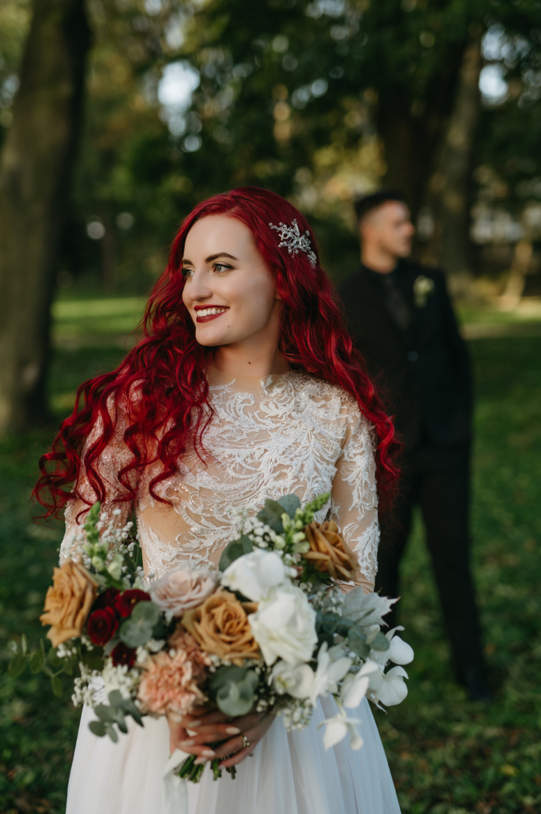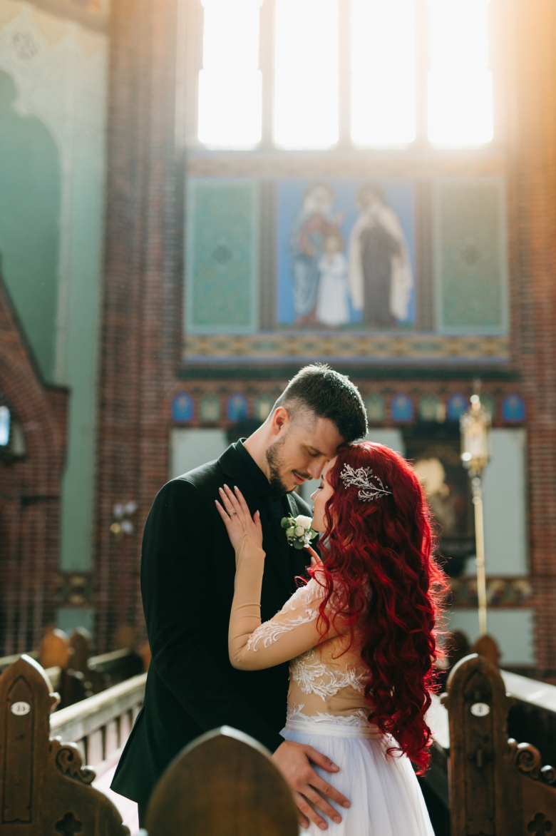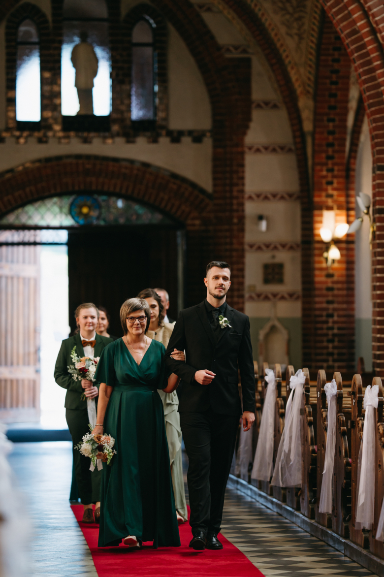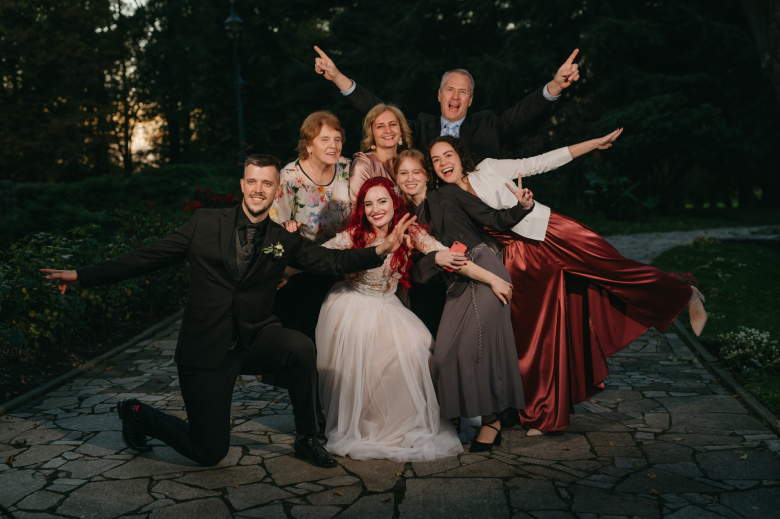 Nikol a David svůj den prožili na nádherném zámku Chałupki v Polsku, kde na ně dýchala historie i elegance na každém kroku. Po krásném obřadu v kostele následovala květinami provoněná hostina plná jemnosti a detailů. Nevěsta v šatech šitých na míru talentovanou švadlenkou Hanou Matyášovou vypadala jako z obrazu – její rudé vlasy a dokonale sladěná rtěnka dodaly celému dni kapku nezaměnitelného kouzla. Pojďte si prohlédnout fotky a nechte se vtáhnout do této atmosféry:).