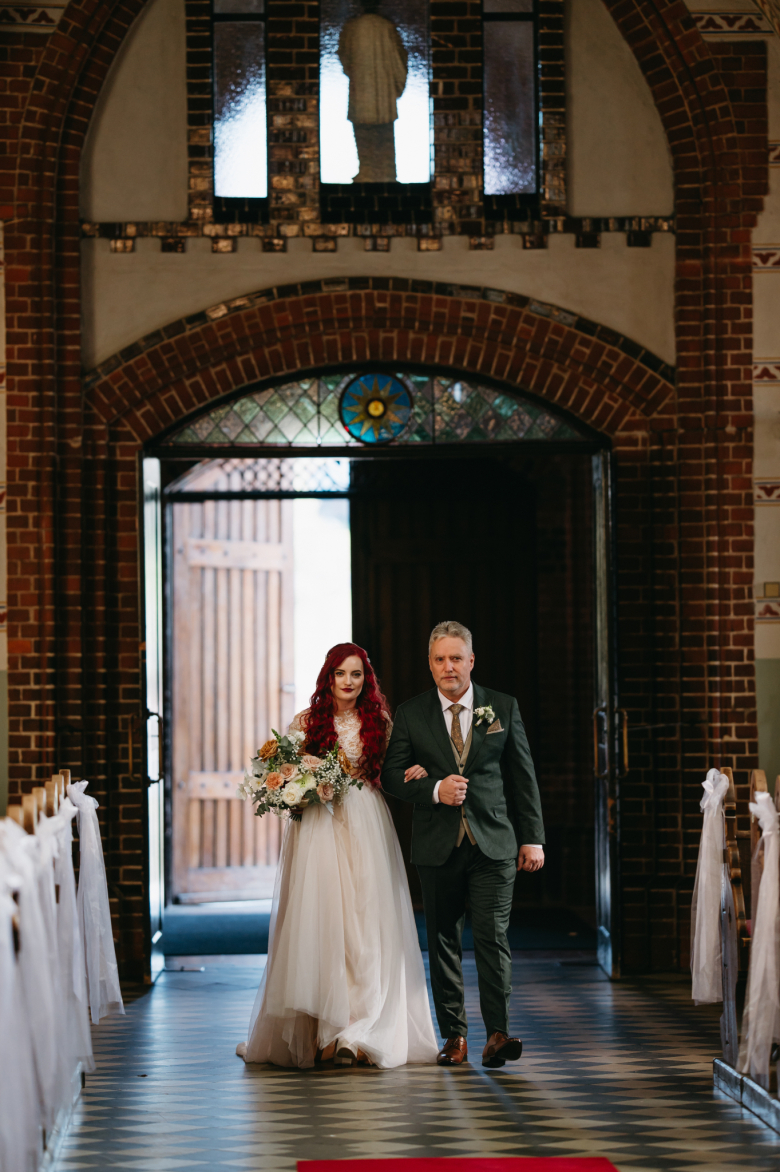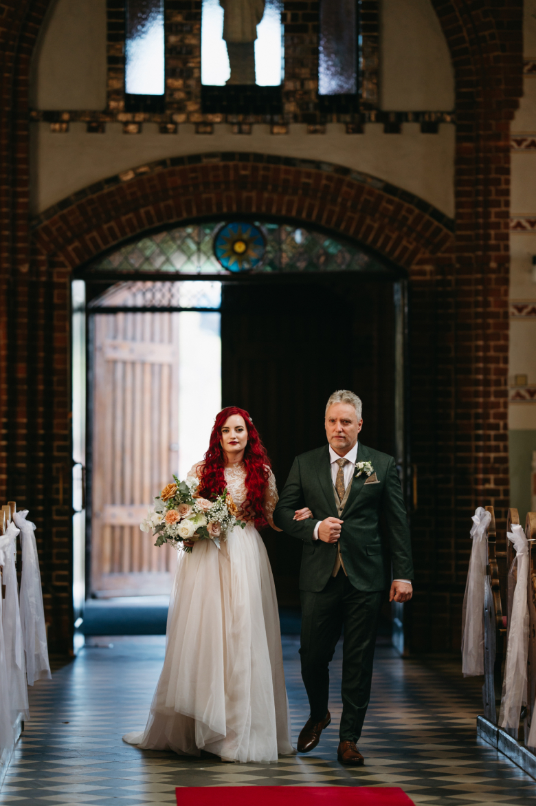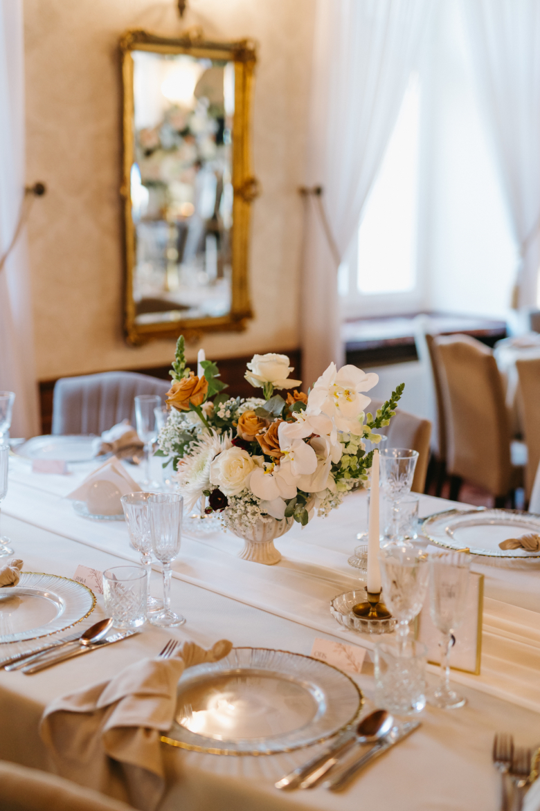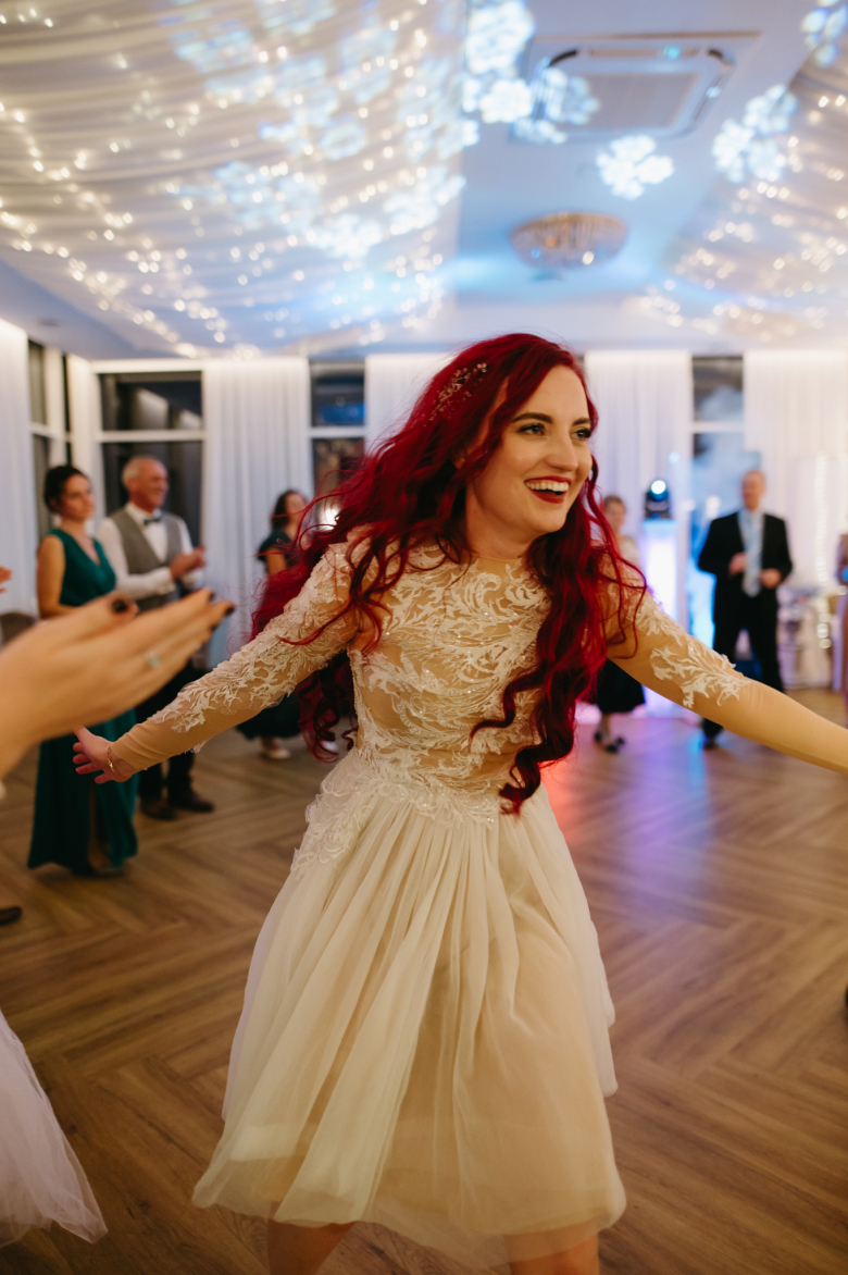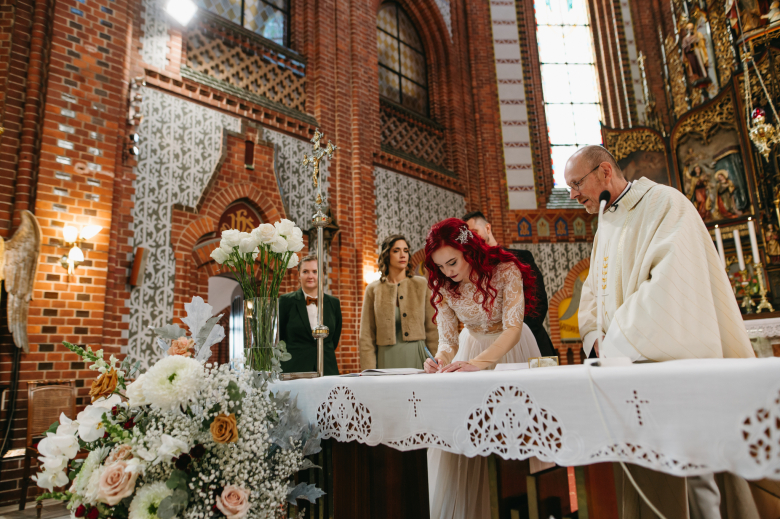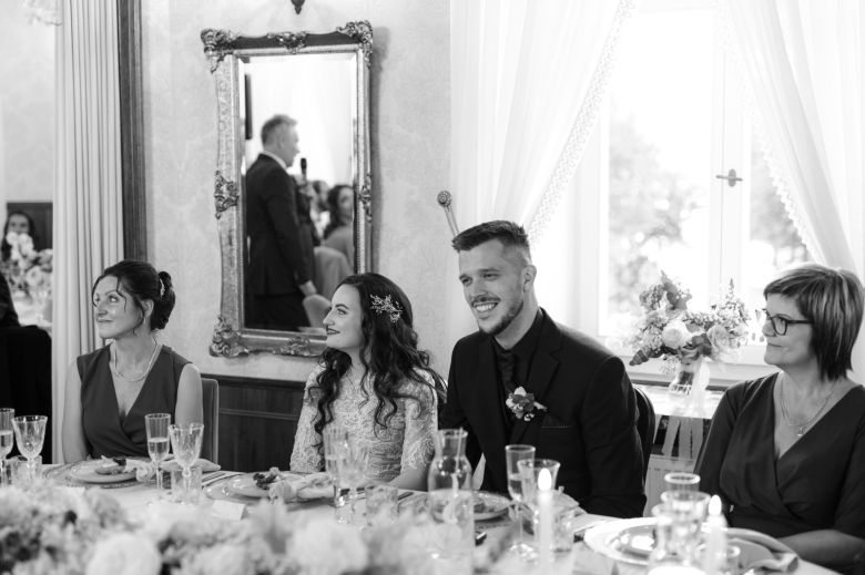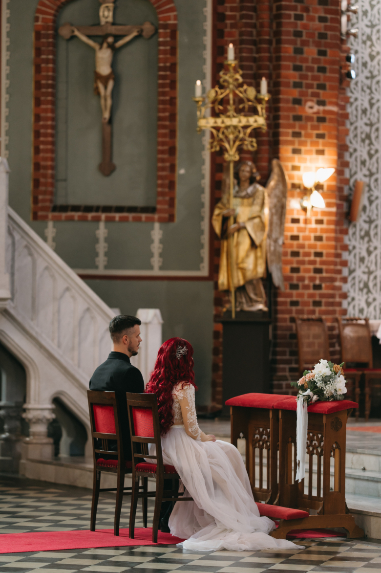 Nikol a David svůj den prožili na nádherném zámku Chałupki v Polsku, kde na ně dýchala historie i elegance na každém kroku. Po krásném obřadu v kostele následovala květinami provoněná hostina plná jemnosti a detailů. Nevěsta v šatech šitých na míru talentovanou švadlenkou Hanou Matyášovou vypadala jako z obrazu – její rudé vlasy a dokonale sladěná rtěnka dodaly celému dni kapku nezaměnitelného kouzla. Pojďte si prohlédnout fotky a nechte se vtáhnout do této atmosféry:).