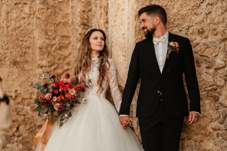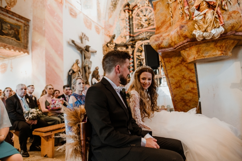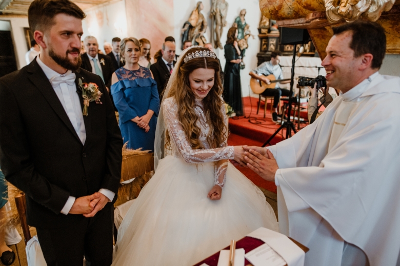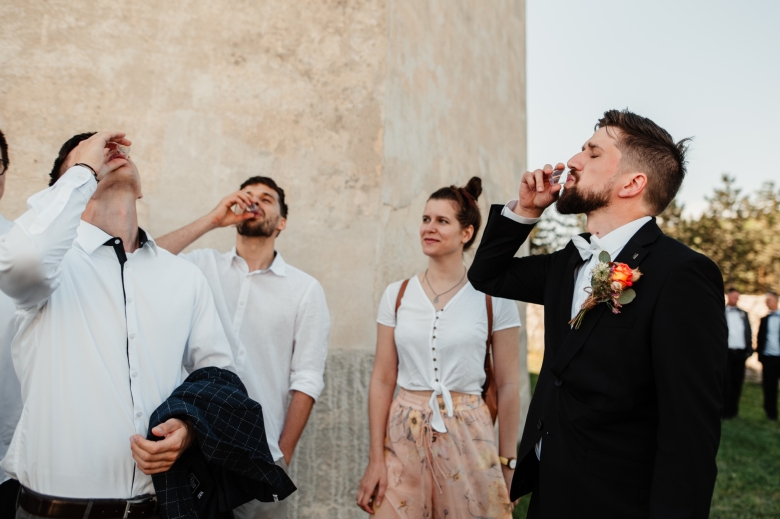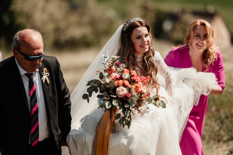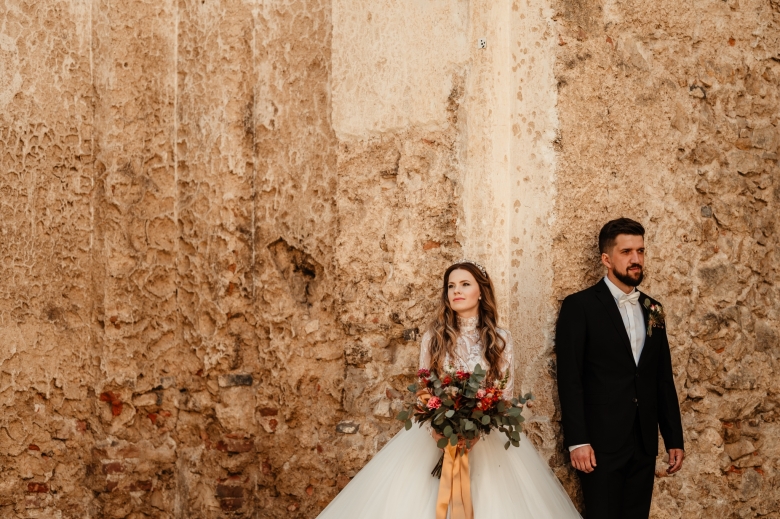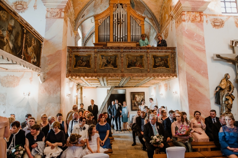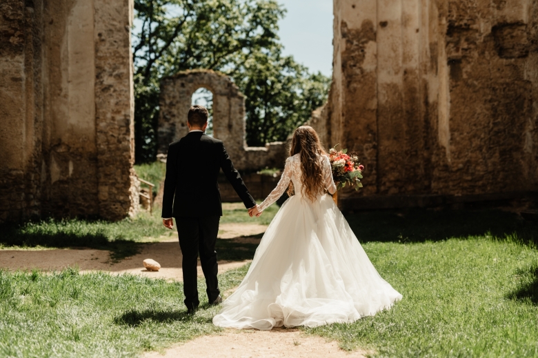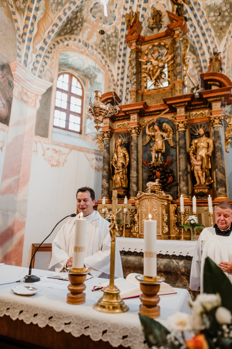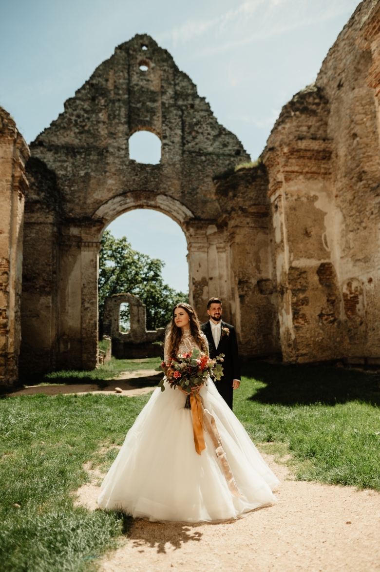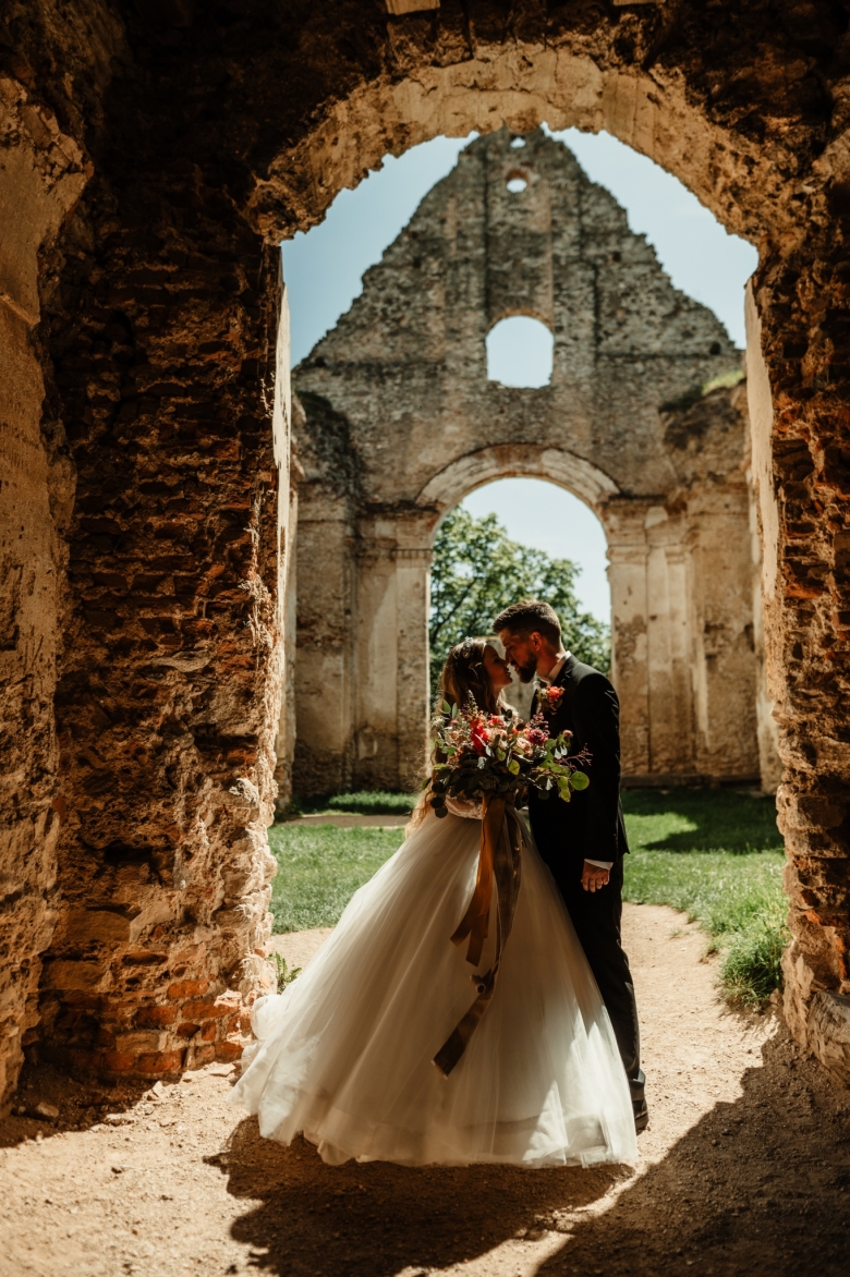 Za Nikoletou a Danielem jsem se vydala v květnu na Slovensko. Kdyby mě v závěru mé ranní cesty neobjevili v lese, tak jsem se ztratila (díky Google maps:D) Místa, kde svatba probíhala byly kouzelné. Zřícenina Klášteru Katarínka má neskutečnou atmosféru, zajeďte si tam na výlet. Obřad byl v kostelíčku na vysokém kopci a tak jsme si dali všichni ještě turistický výšlap:)) Jak já říkám: Svatební fotograf musí být ve formě:D