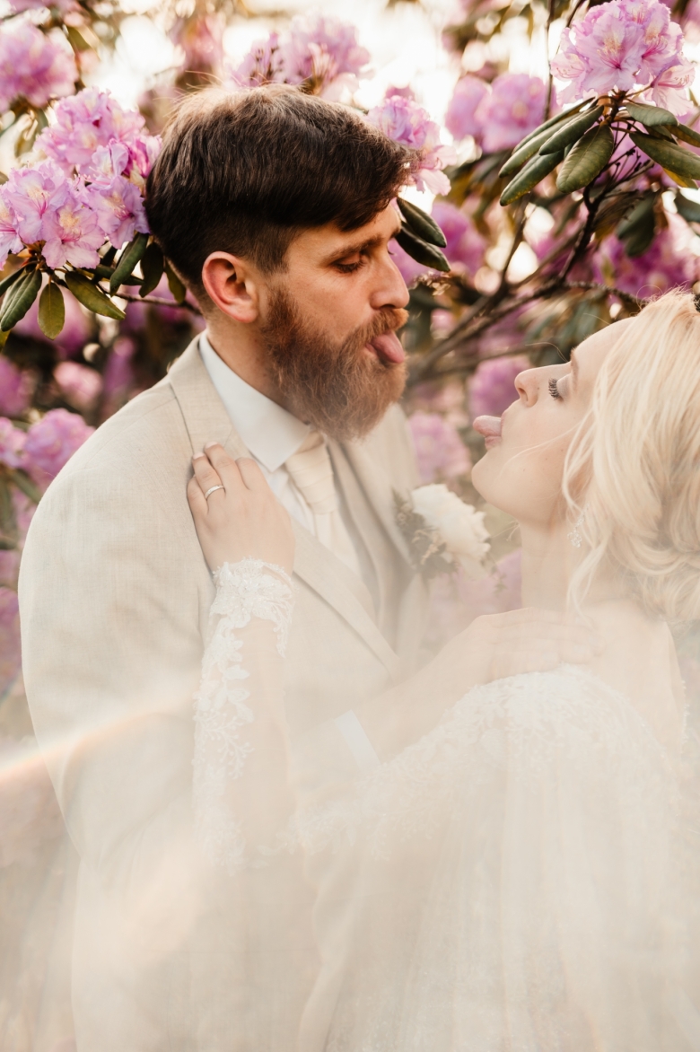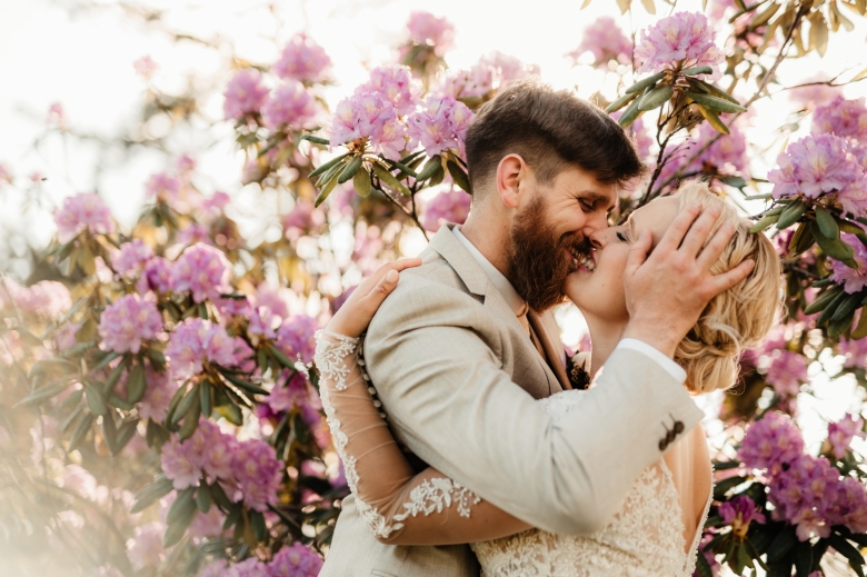 Vendy a Ondra jsou bezesporu můj nejvíc vysmátý svatební pár roku 2022. Od rána až do večera byla skvělá nálada a ani déšť, co přišel během obřadu ji nepokazil. Moc se mi líbilo naše svatební místo, Hřebčín Albertovec, který nabízí spoustu zákoutí pro focení. Moje srdce si získal samozřejmě keř fialového rododendronu, jak uvidíte v albu:)
